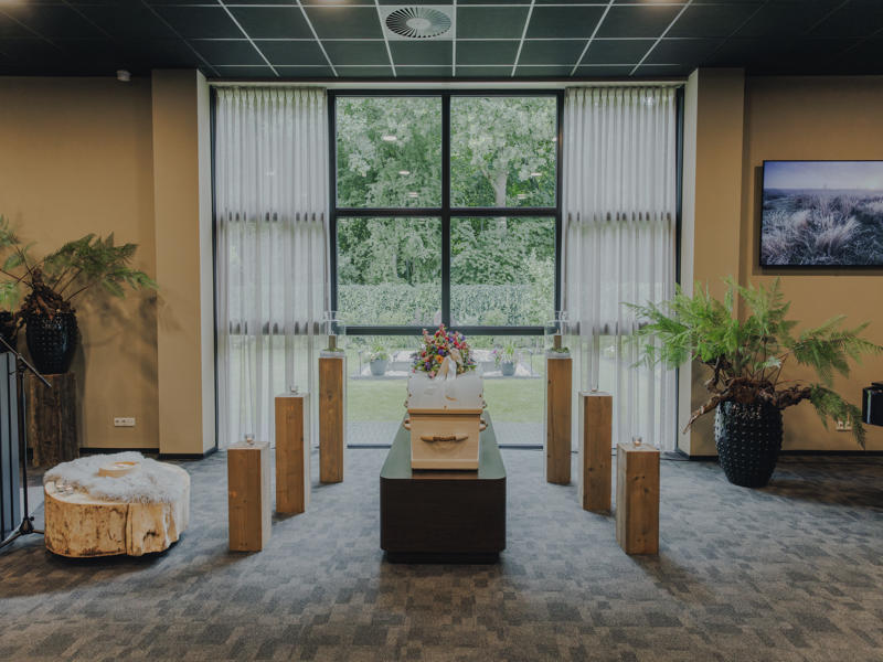 Ons sfeervol ingerichte uitvaartcentrum beschikt over diverse ruimtes voor het opbaren en om afscheid te kunnen nemen van uw dierbare. Wij beschikken over diverse ruimtes om een afscheidsplechtigheid te kunnen houden, voor zowel begrafenisplechtigheden als crematieplechtigheden. Ook heeft u bij ons ruim de tijd, standaard 3 uur, voor het afscheid. Zo kunt u, zonder tijdsdruk, afscheid nemen van uw overleden dierbare en na afloop in alle rust bijpraten in onze koffiekamer.