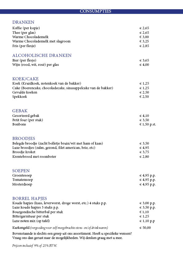 Zie hier onder onze tarieven van onze dienstverlening en de consumpties van het kalenderjaar 2026